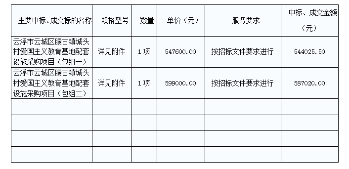 云浮市云城區(qū)腰古鎮(zhèn)城頭村愛國(guó)主義教育基地配套設(shè)施采購(gòu)項(xiàng)目中標(biāo)公告